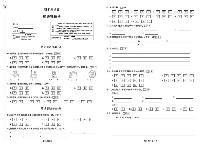 当前位置: 首页小学资源小学五年级正文 五年级数学下册期末测试卷答题卡_共1页 小学五年级 6 天前 0 0 5 以上为部分内容预览,如需源文档请登录您的会员账号进行下载! 声明:本站所有文章,如无特殊说明或标注,均为本站原创发布。任何个人或组织,在未征得本站同意时,禁止复制、盗用、采集、发布本站内容到任何网站、书籍等各类媒体平台。如若本站内容侵犯了原著者的合法权益,可联系我们进行处理。 尚学资源永久会员 打赏 收藏 海报 链接