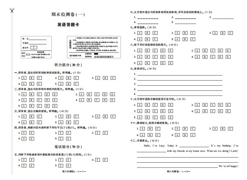 当前位置: 首页小学资源小学五年级正文 五年级数学下册期末检测卷(一)答题卡_共1页 小学五年级 6 天前 0 0 5 以上为部分内容预览,如需源文档请登录您的会员账号进行下载! 声明:本站所有文章,如无特殊说明或标注,均为本站原创发布。任何个人或组织,在未征得本站同意时,禁止复制、盗用、采集、发布本站内容到任何网站、书籍等各类媒体平台。如若本站内容侵犯了原著者的合法权益,可联系我们进行处理。 尚学资源永久会员 打赏 收藏 海报 链接