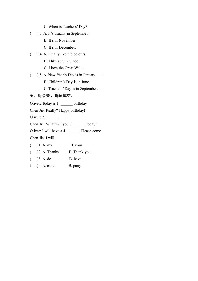 当前位置: 首页小学资源小学五年级正文 五年级数学下册英语Unit3MyschoolcalendarPartB同步听力训练人教PEP版_共3页 小学五年级 6 天前 0 0 5 以上为部分内容预览,如需源文档请登录您的会员账号进行下载! 声明:本站所有文章,如无特殊说明或标注,均为本站原创发布。任何个人或组织,在未征得本站同意时,禁止复制、盗用、采集、发布本站内容到任何网站、书籍等各类媒体平台。如若本站内容侵犯了原著者的合法权益,可联系我们进行处理。 尚学资源永久会员 打赏 收藏 海报 链接