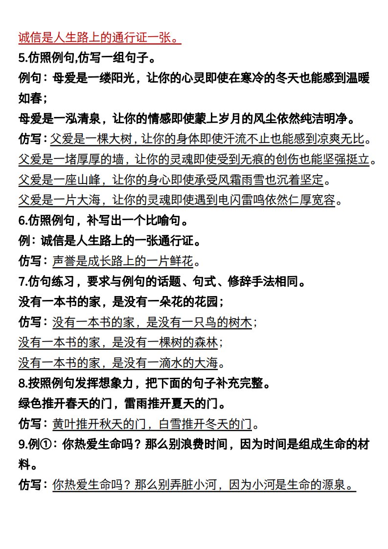 当前位置: 首页小学资源小学六年级正文 六上语文重点仿写句子9页_共9页 小学六年级 6 天前 0 0 5 以上为部分内容预览,如需源文档请登录您的会员账号进行下载! 声明:本站所有文章,如无特殊说明或标注,均为本站原创发布。任何个人或组织,在未征得本站同意时,禁止复制、盗用、采集、发布本站内容到任何网站、书籍等各类媒体平台。如若本站内容侵犯了原著者的合法权益,可联系我们进行处理。 尚学资源永久会员 打赏 收藏 海报 链接