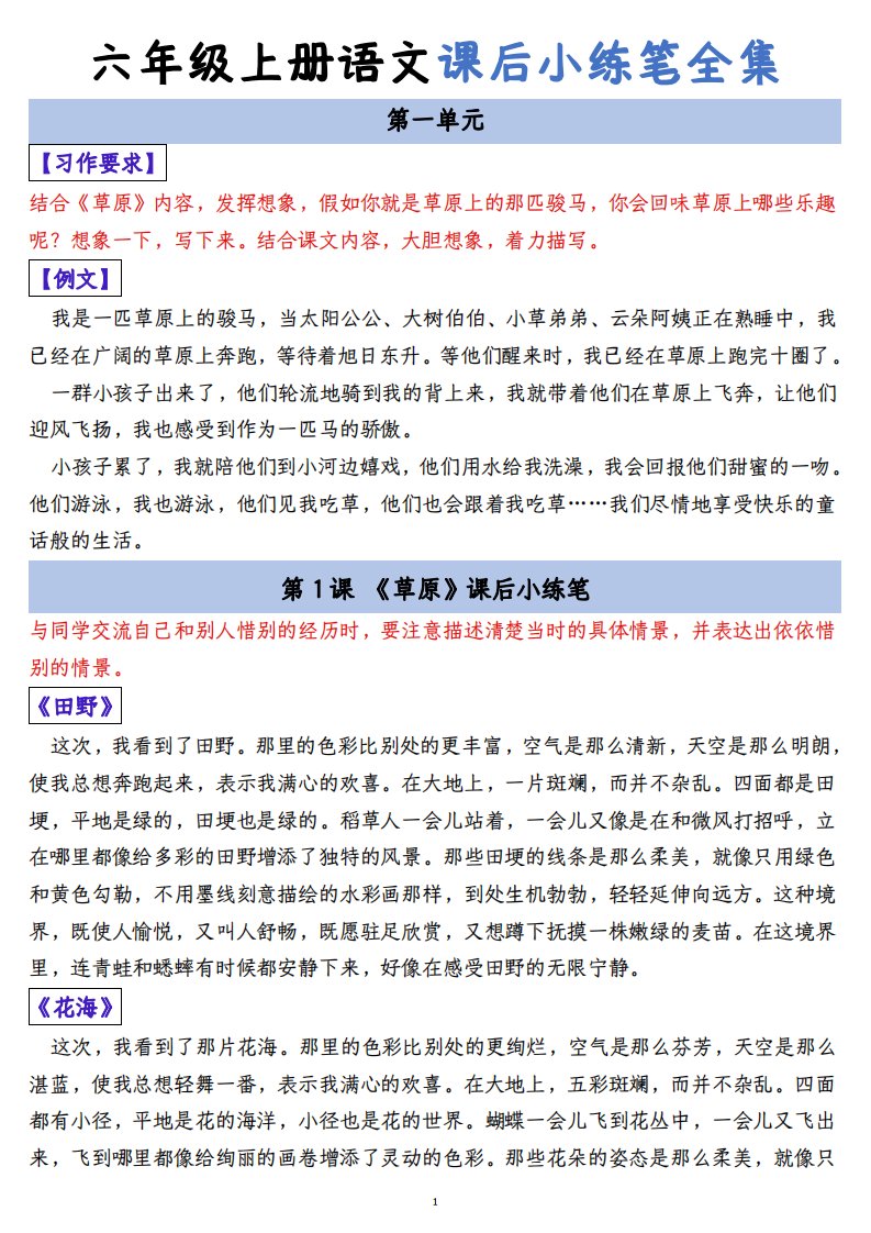 当前位置: 首页小学资源小学六年级正文 六上语文课后小练笔全集(写作练习)_共10页 小学六年级 6 天前 0 0 5 以上为部分内容预览,如需源文档请登录您的会员账号进行下载! 声明:本站所有文章,如无特殊说明或标注,均为本站原创发布。任何个人或组织,在未征得本站同意时,禁止复制、盗用、采集、发布本站内容到任何网站、书籍等各类媒体平台。如若本站内容侵犯了原著者的合法权益,可联系我们进行处理。 尚学资源永久会员 打赏 收藏 海报 链接