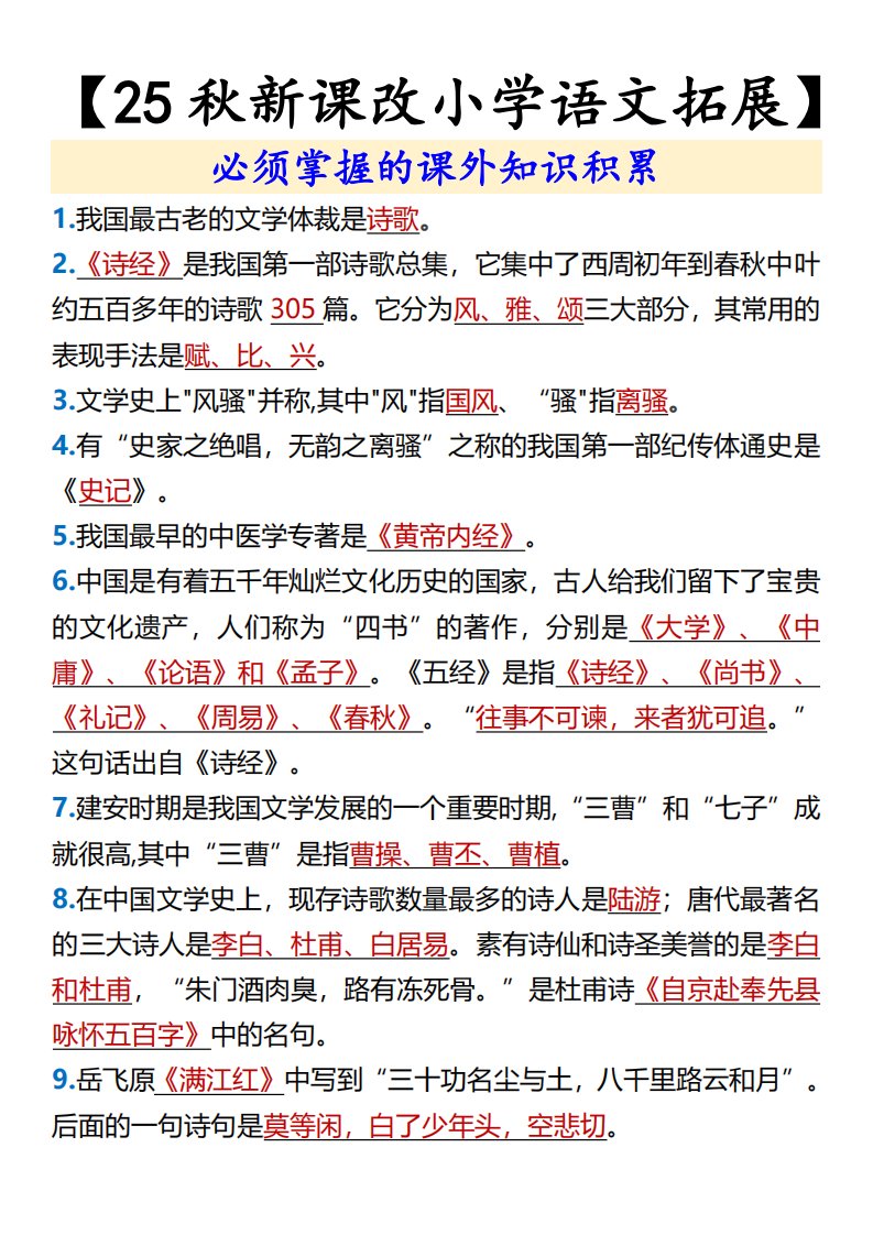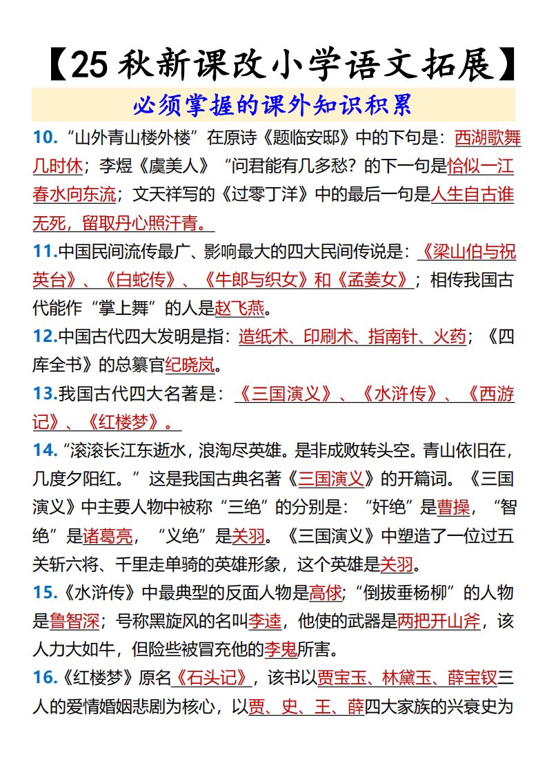 当前位置: 首页小学资源小学六年级正文 【2025秋新版】【小学语文拓展】必须掌握的课外知识积累-六上语文_共4页 小学六年级 6 天前 0 0 5 以上为部分内容预览,如需源文档请登录您的会员账号进行下载! 声明:本站所有文章,如无特殊说明或标注,均为本站原创发布。任何个人或组织,在未征得本站同意时,禁止复制、盗用、采集、发布本站内容到任何网站、书籍等各类媒体平台。如若本站内容侵犯了原著者的合法权益,可联系我们进行处理。 尚学资源永久会员 打赏 收藏 海报 链接