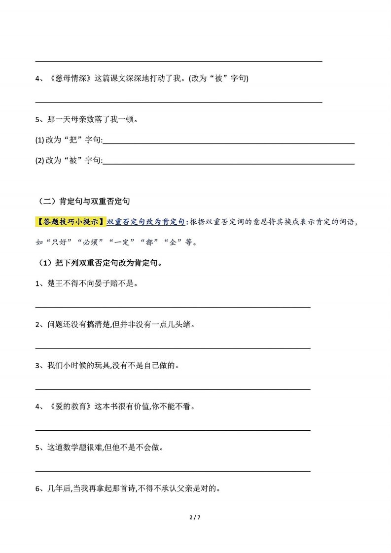 当前位置: 首页小学资源小学六年级正文 五升六语文暑假衔接句子练习-句式变换-六上语文_共10页 小学六年级 6 天前 0 0 5 以上为部分内容预览,如需源文档请登录您的会员账号进行下载! 声明:本站所有文章,如无特殊说明或标注,均为本站原创发布。任何个人或组织,在未征得本站同意时,禁止复制、盗用、采集、发布本站内容到任何网站、书籍等各类媒体平台。如若本站内容侵犯了原著者的合法权益,可联系我们进行处理。 尚学资源永久会员 打赏 收藏 海报 链接