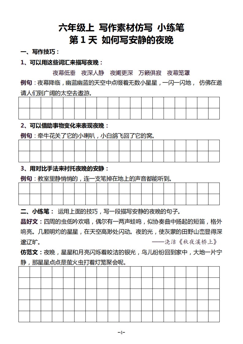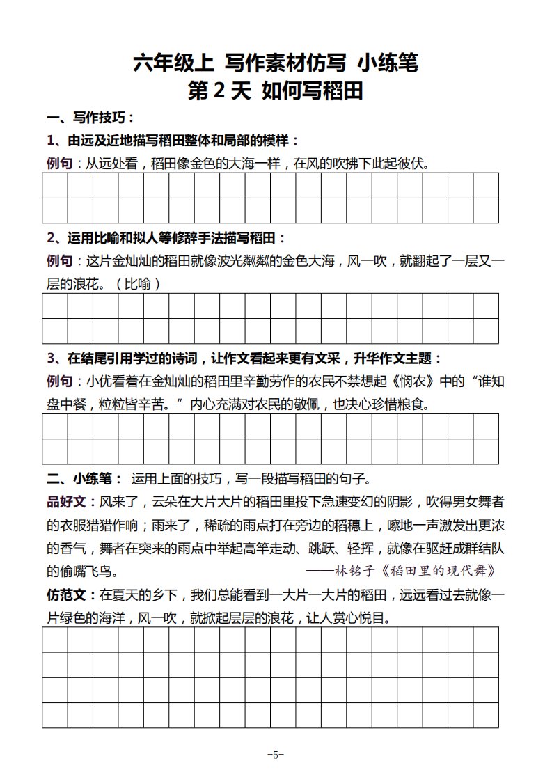 当前位置: 首页小学资源小学六年级正文 五升六暑假写作素材仿写每日一练(40篇)-六上语文_共40页 小学六年级 7 天前 0 0 15 以上为部分内容预览,如需源文档请登录您的会员账号进行下载! 声明:本站所有文章,如无特殊说明或标注,均为本站原创发布。任何个人或组织,在未征得本站同意时,禁止复制、盗用、采集、发布本站内容到任何网站、书籍等各类媒体平台。如若本站内容侵犯了原著者的合法权益,可联系我们进行处理。 尚学资源永久会员 打赏 收藏 海报 链接
