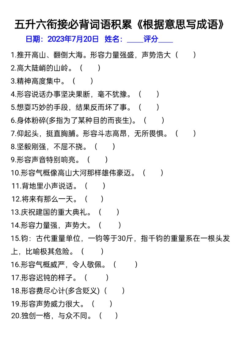 五升六年级语文暑假衔接词语积累-六上语文_共10页