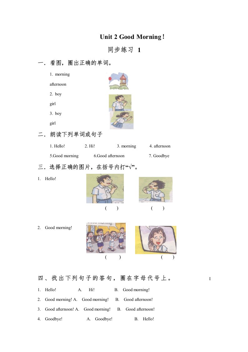 一年级英语上册Unit2GoodMorning!同步练习1(人教一起点)_共2页