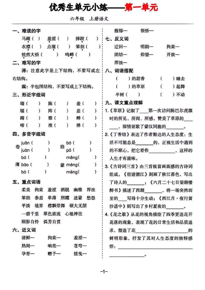 当前位置: 首页小学资源小学六年级正文 六年级上册语文1-8单元基础小练习_共11页 小学六年级 7 天前 0 0 10 以上为部分内容预览,如需源文档请登录您的会员账号进行下载! 声明:本站所有文章,如无特殊说明或标注,均为本站原创发布。任何个人或组织,在未征得本站同意时,禁止复制、盗用、采集、发布本站内容到任何网站、书籍等各类媒体平台。如若本站内容侵犯了原著者的合法权益,可联系我们进行处理。 尚学资源永久会员 打赏 收藏 海报 链接