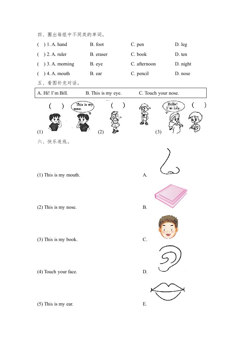 一年级英语上册Unit2_Lesson3课时训练(人教一起点)_共3页