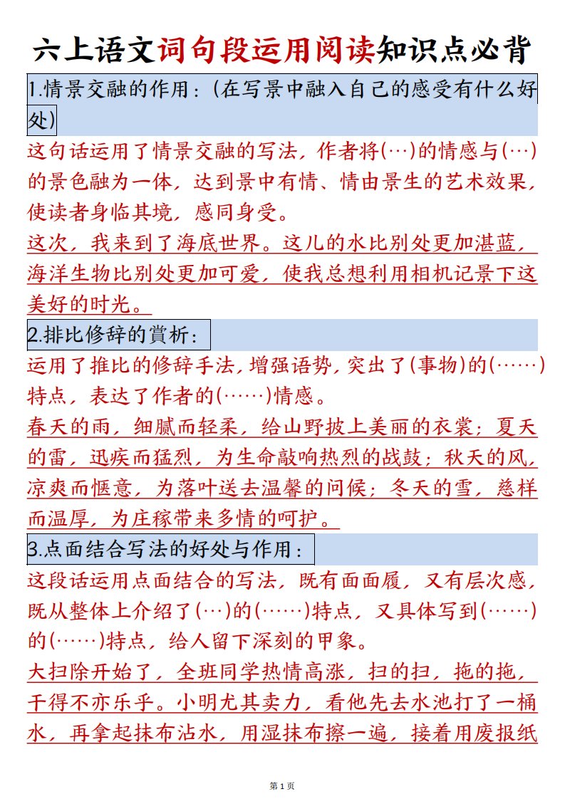 当前位置: 首页小学资源小学六年级正文 六年级语文上册词句段运用阅读知识点必背_共6页 小学六年级 6 天前 0 0 5 以上为部分内容预览,如需源文档请登录您的会员账号进行下载! 声明:本站所有文章,如无特殊说明或标注,均为本站原创发布。任何个人或组织,在未征得本站同意时,禁止复制、盗用、采集、发布本站内容到任何网站、书籍等各类媒体平台。如若本站内容侵犯了原著者的合法权益,可联系我们进行处理。 尚学资源永久会员 打赏 收藏 海报 链接