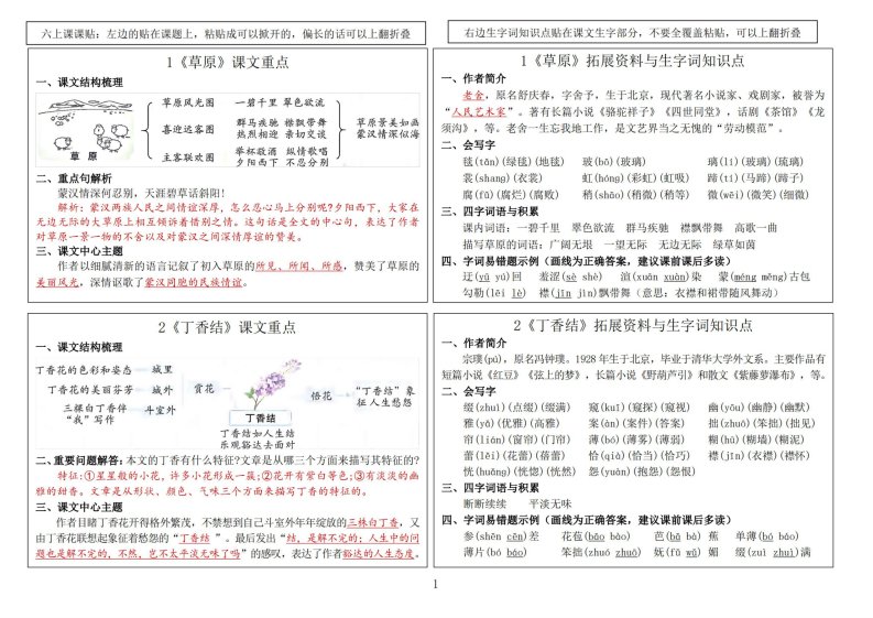 当前位置: 首页小学资源小学六年级正文 六年级语文上册-暑假预习课课贴_共12页 小学六年级 6 天前 0 0 10 以上为部分内容预览,如需源文档请登录您的会员账号进行下载! 声明:本站所有文章,如无特殊说明或标注,均为本站原创发布。任何个人或组织,在未征得本站同意时,禁止复制、盗用、采集、发布本站内容到任何网站、书籍等各类媒体平台。如若本站内容侵犯了原著者的合法权益,可联系我们进行处理。 尚学资源永久会员 打赏 收藏 海报 链接