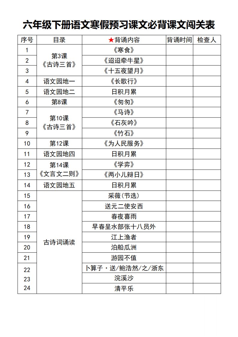 当前位置: 首页小学资源小学六年级正文 六年级【语文寒假预习】课文必背课文闯关表7页_共7页 小学六年级 6 天前 0 0 5 以上为部分内容预览,如需源文档请登录您的会员账号进行下载! 声明:本站所有文章,如无特殊说明或标注,均为本站原创发布。任何个人或组织,在未征得本站同意时,禁止复制、盗用、采集、发布本站内容到任何网站、书籍等各类媒体平台。如若本站内容侵犯了原著者的合法权益,可联系我们进行处理。 尚学资源永久会员 打赏 收藏 海报 链接