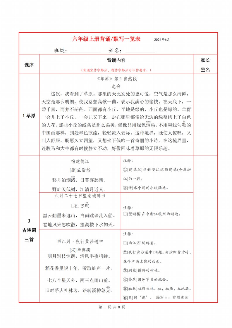 当前位置: 首页小学资源小学六年级正文 六上语文背诵默写一览表_共8页 小学六年级 6 天前 0 0 5 以上为部分内容预览,如需源文档请登录您的会员账号进行下载! 声明:本站所有文章,如无特殊说明或标注,均为本站原创发布。任何个人或组织,在未征得本站同意时,禁止复制、盗用、采集、发布本站内容到任何网站、书籍等各类媒体平台。如若本站内容侵犯了原著者的合法权益,可联系我们进行处理。 尚学资源永久会员 打赏 收藏 海报 链接