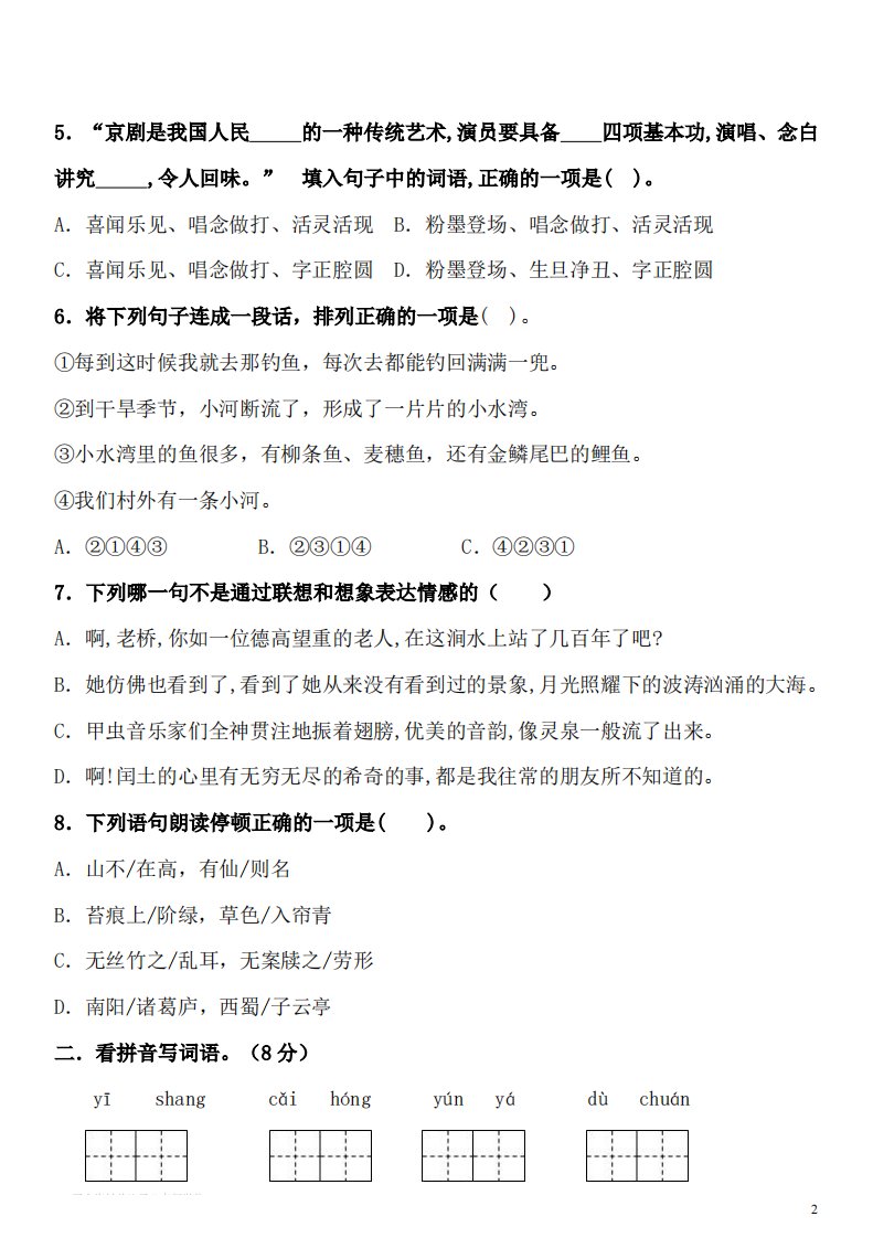 当前位置: 首页小学资源小学六年级正文 【期末真题测试卷.2】六上语文_共7页 小学六年级 7 天前 0 0 5 以上为部分内容预览,如需源文档请登录您的会员账号进行下载! 声明:本站所有文章,如无特殊说明或标注,均为本站原创发布。任何个人或组织,在未征得本站同意时,禁止复制、盗用、采集、发布本站内容到任何网站、书籍等各类媒体平台。如若本站内容侵犯了原著者的合法权益,可联系我们进行处理。 尚学资源永久会员 打赏 收藏 海报 链接