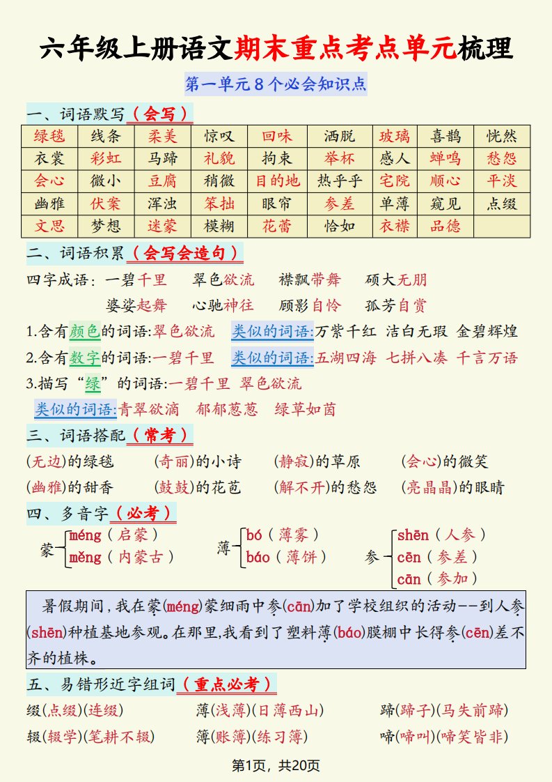 当前位置: 首页小学资源小学六年级正文 【期末重点考点单元梳理】六上语文_共20页 小学六年级 7 天前 0 0 10 以上为部分内容预览,如需源文档请登录您的会员账号进行下载! 声明:本站所有文章,如无特殊说明或标注,均为本站原创发布。任何个人或组织,在未征得本站同意时,禁止复制、盗用、采集、发布本站内容到任何网站、书籍等各类媒体平台。如若本站内容侵犯了原著者的合法权益,可联系我们进行处理。 尚学资源永久会员 打赏 收藏 海报 链接