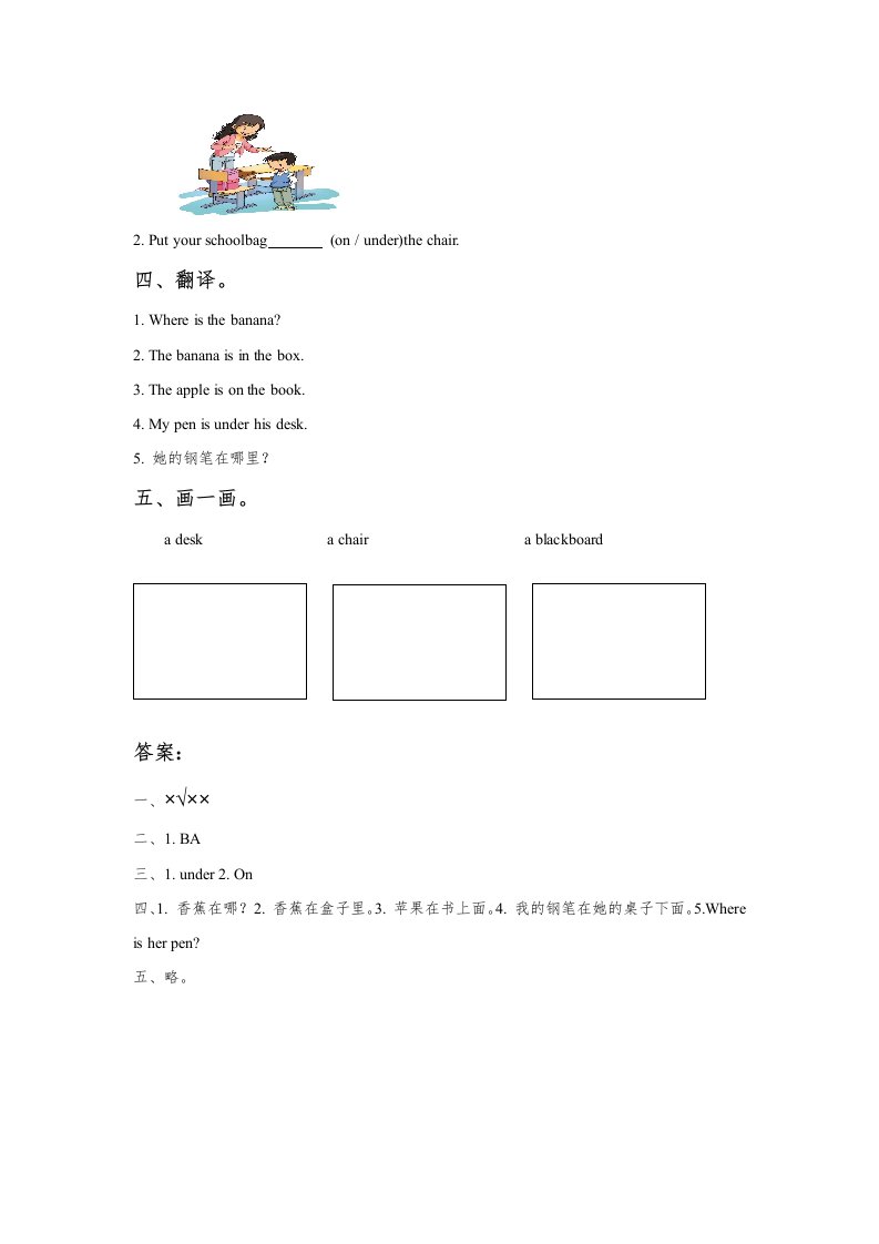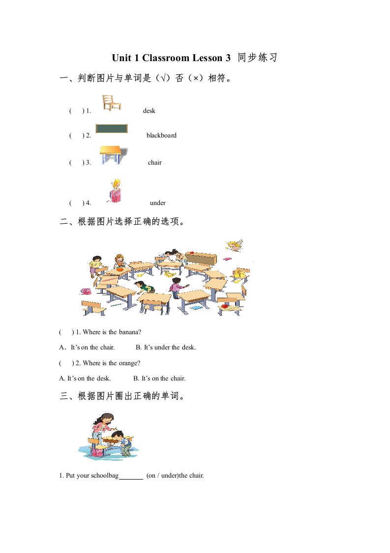 一年级英语上册Unit1ClassroomLesson3同步练习3(人教一起点)_共2页