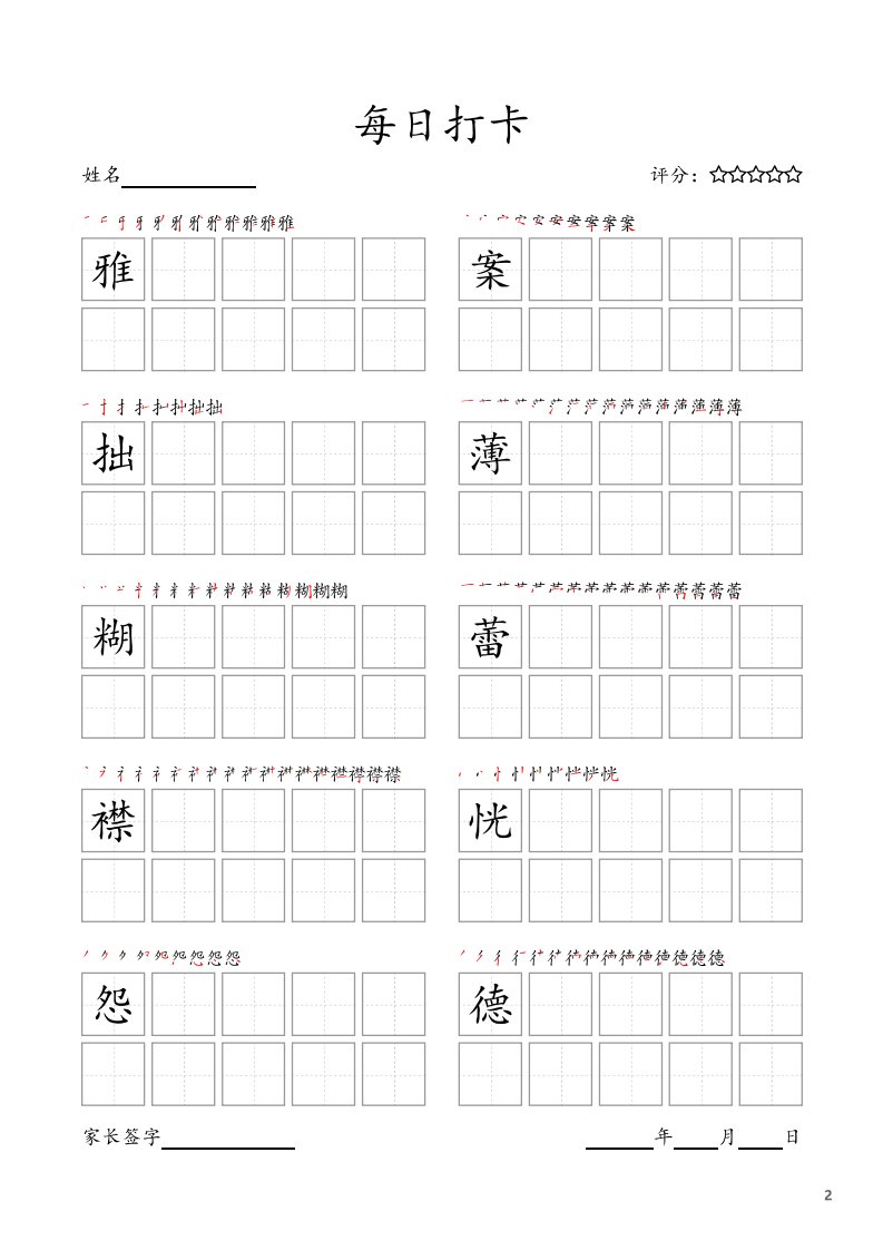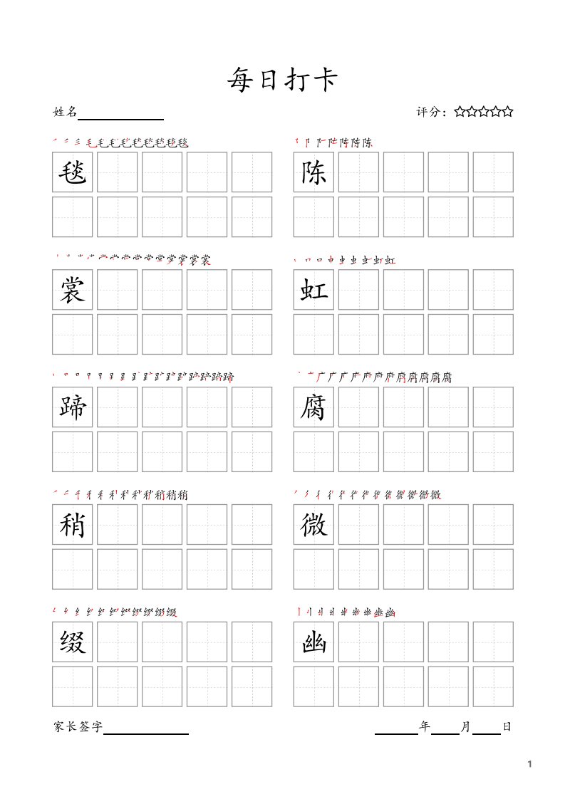 每日打卡(10字版)_六年级上册语文(部编版高清电子字帖)_共18页
