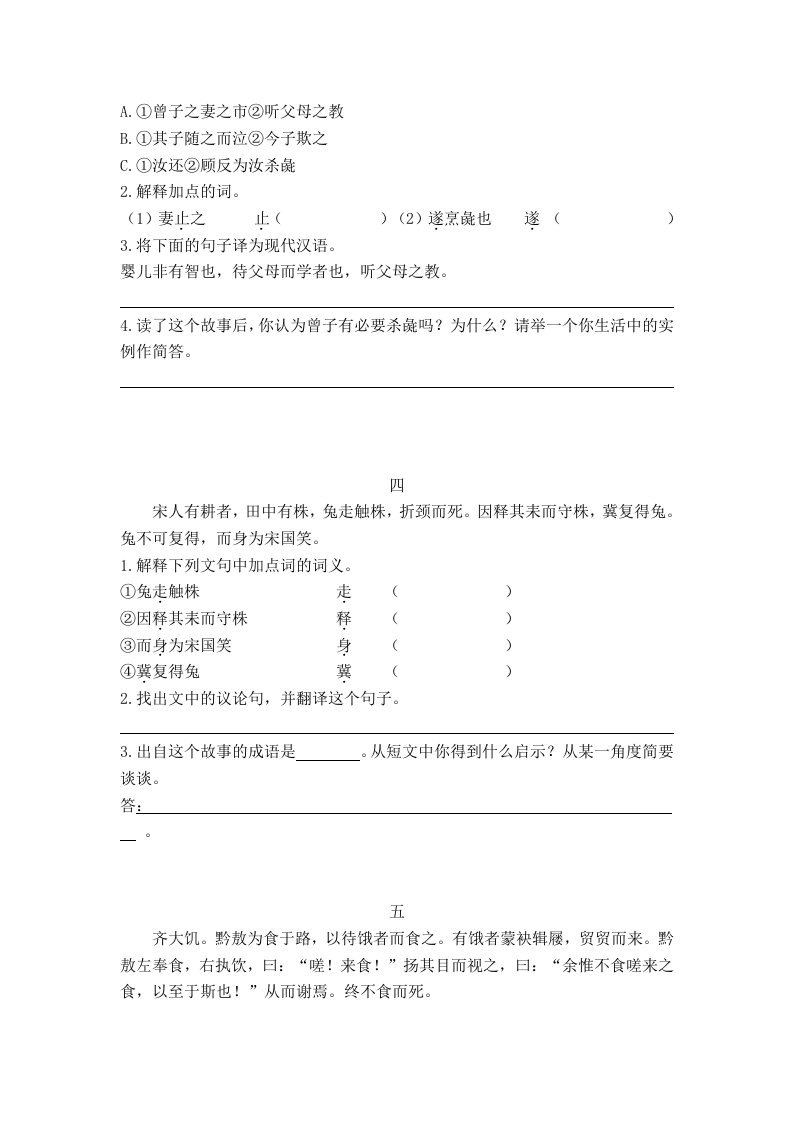 六年级语文上册古文阅读及答案(8篇)(部编版)_共6页