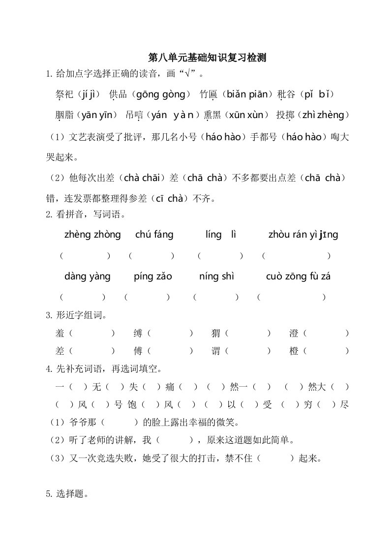 当前位置: 首页小学资源小学六年级正文 六年级语文上册第八单元基础知识复习检测(附答案)(部编版)_共3页 小学六年级 1 周前 0 0 5 以上为部分内容预览,如需源文档请登录您的会员账号进行下载! 声明:本站所有文章,如无特殊说明或标注,均为本站原创发布。任何个人或组织,在未征得本站同意时,禁止复制、盗用、采集、发布本站内容到任何网站、书籍等各类媒体平台。如若本站内容侵犯了原著者的合法权益,可联系我们进行处理。 尚学资源永久会员 打赏 收藏 海报 链接