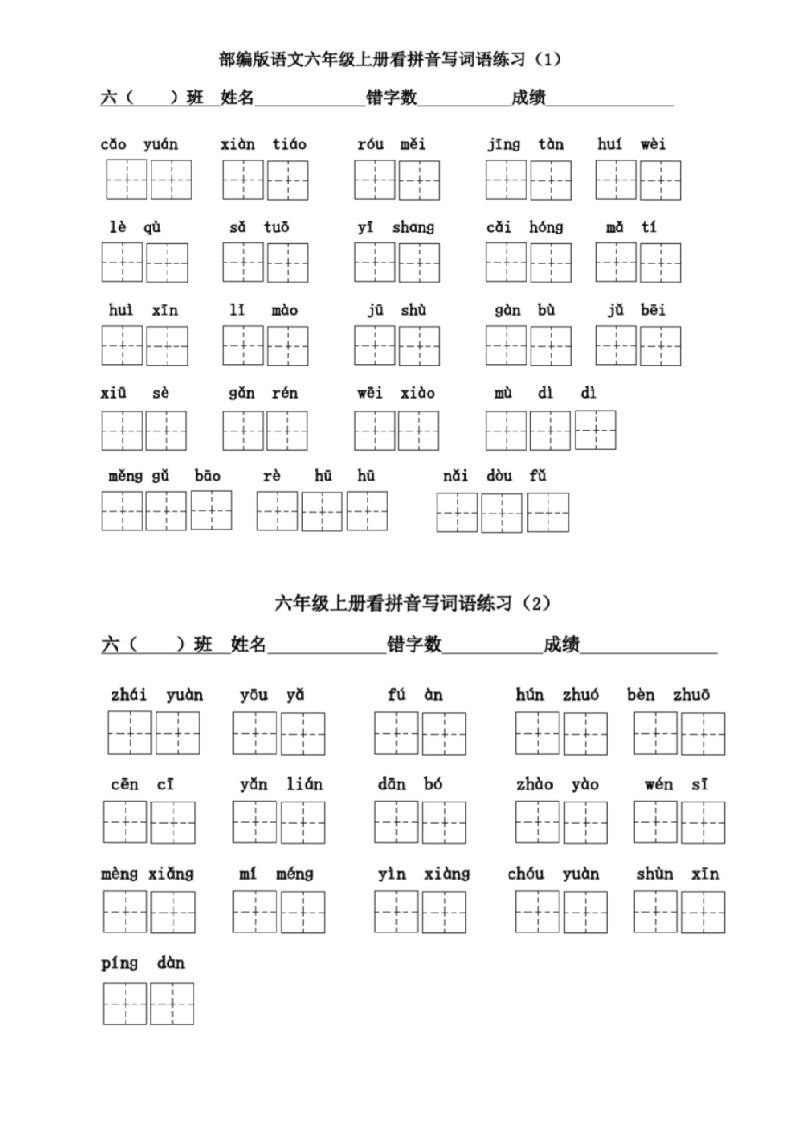 六年级语文上册看拼音写词语(1)(部编版)_共11页