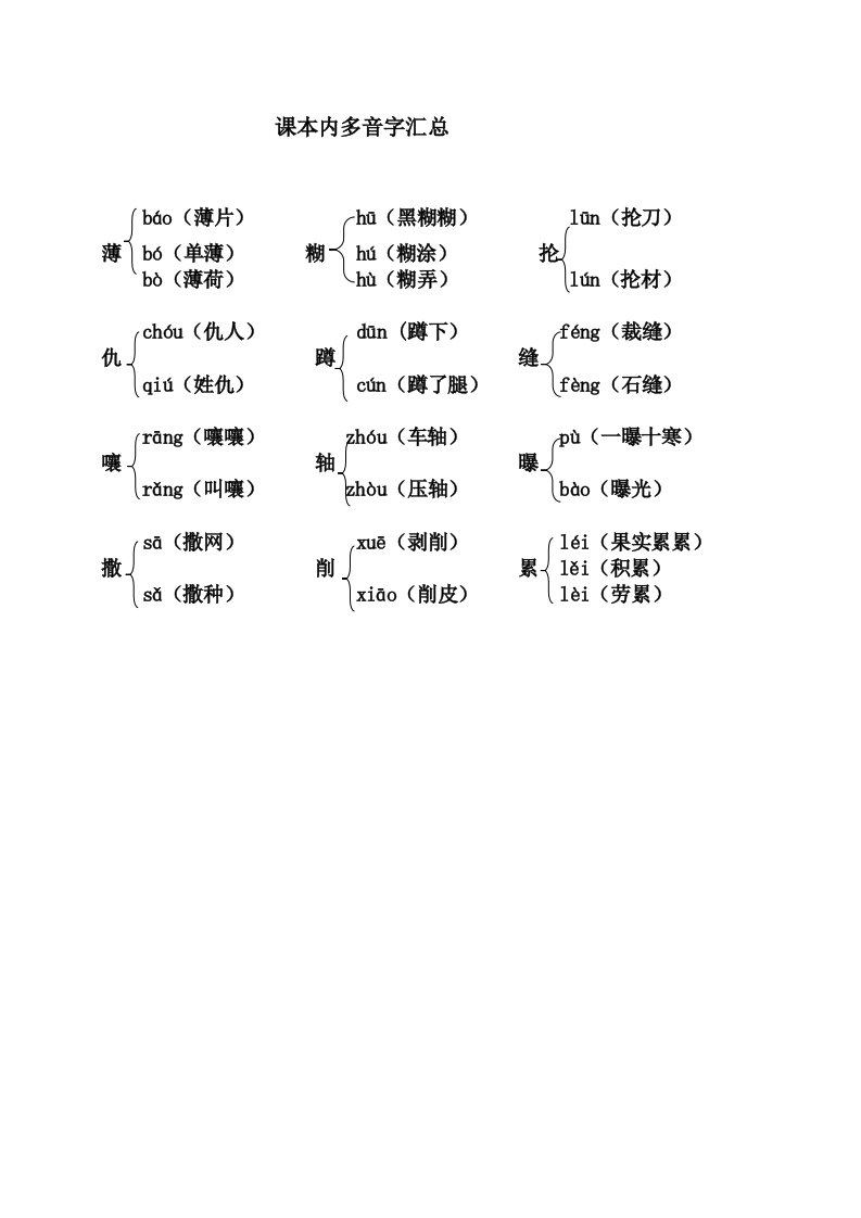 当前位置: 首页小学资源小学六年级正文 六年级语文上册()课本内多音字汇总(部编版)_共1页 小学六年级 6 天前 0 0 5 以上为部分内容预览,如需源文档请登录您的会员账号进行下载! 声明:本站所有文章,如无特殊说明或标注,均为本站原创发布。任何个人或组织,在未征得本站同意时,禁止复制、盗用、采集、发布本站内容到任何网站、书籍等各类媒体平台。如若本站内容侵犯了原著者的合法权益,可联系我们进行处理。 尚学资源永久会员 打赏 收藏 海报 链接