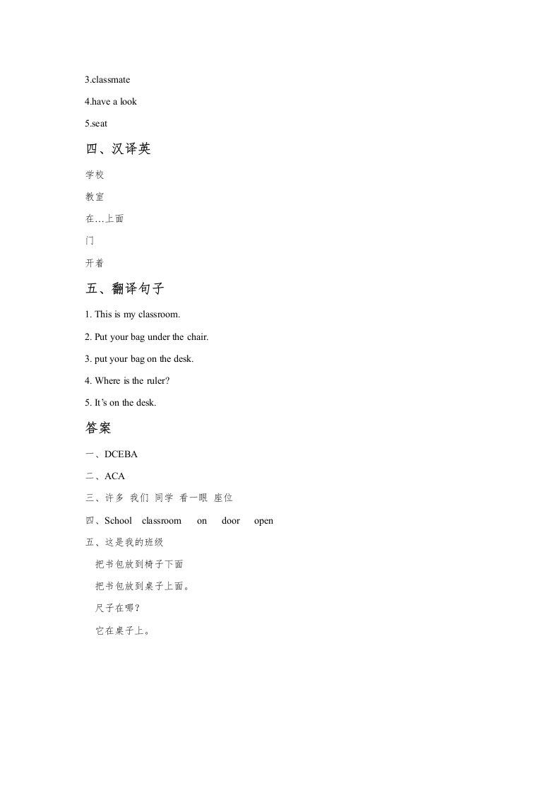 一年级英语上册Unit1ClassroomLesson1同步练习2(人教一起点)_共3页