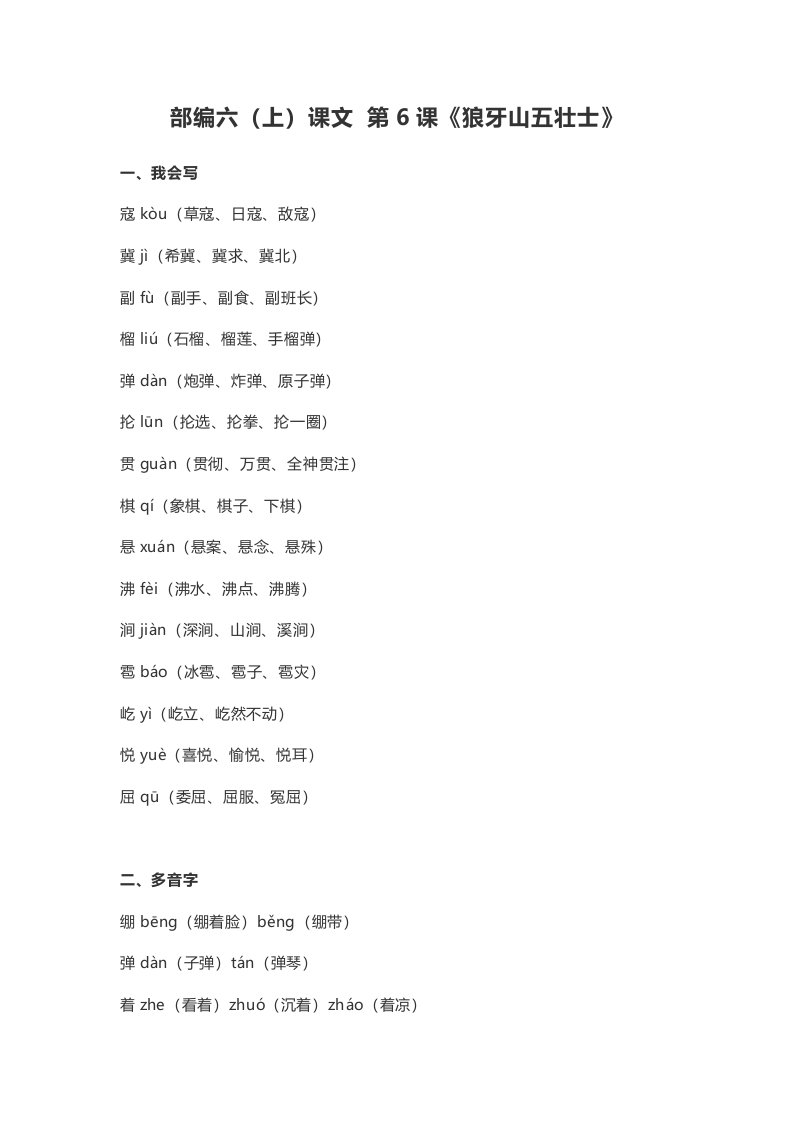 六年级语文上册课文第6课《狼牙山五壮士》(部编版)_共6页
