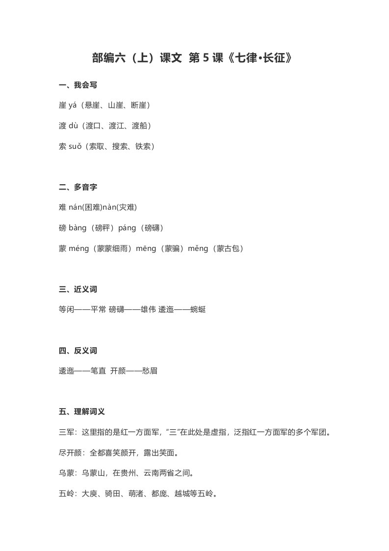 六年级语文上册课文第5课《七律·长征》(部编版)_共4页