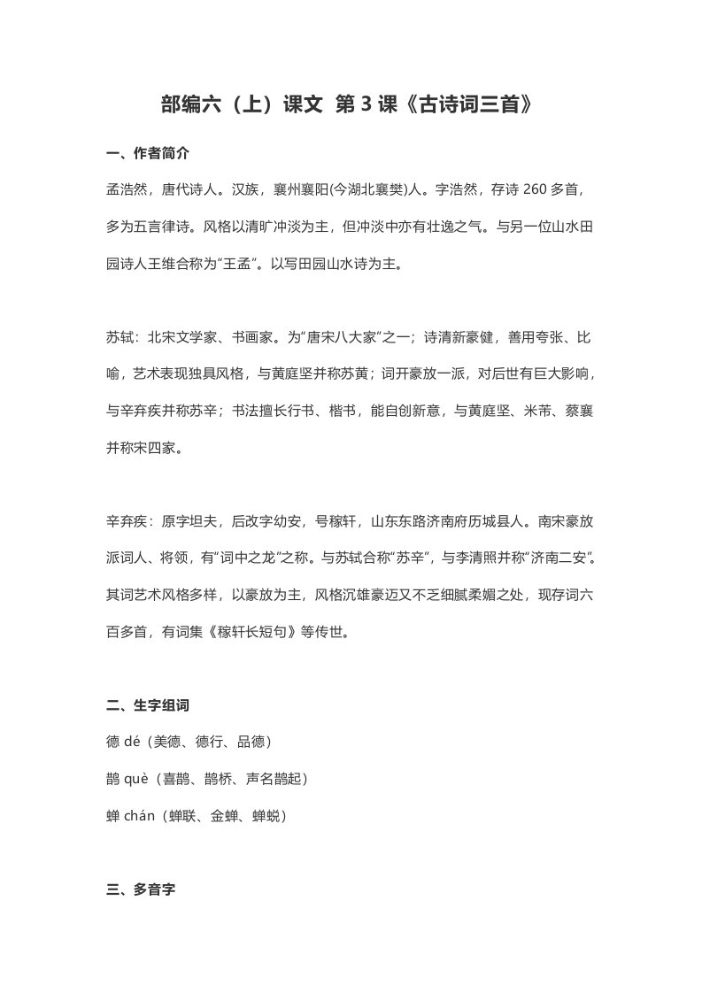 六年级语文上册课文第3课《古诗词三首》(部编版)_共4页