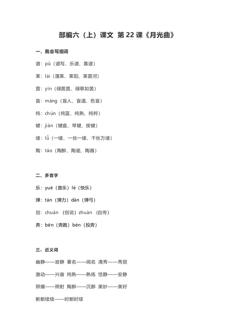 当前位置: 首页小学资源小学六年级正文 六年级语文上册课文第23课《月光曲》(部编版)_共8页 小学六年级 6 天前 0 0 5 以上为部分内容预览,如需源文档请登录您的会员账号进行下载! 声明:本站所有文章,如无特殊说明或标注,均为本站原创发布。任何个人或组织,在未征得本站同意时,禁止复制、盗用、采集、发布本站内容到任何网站、书籍等各类媒体平台。如若本站内容侵犯了原著者的合法权益,可联系我们进行处理。 尚学资源永久会员 打赏 收藏 海报 链接