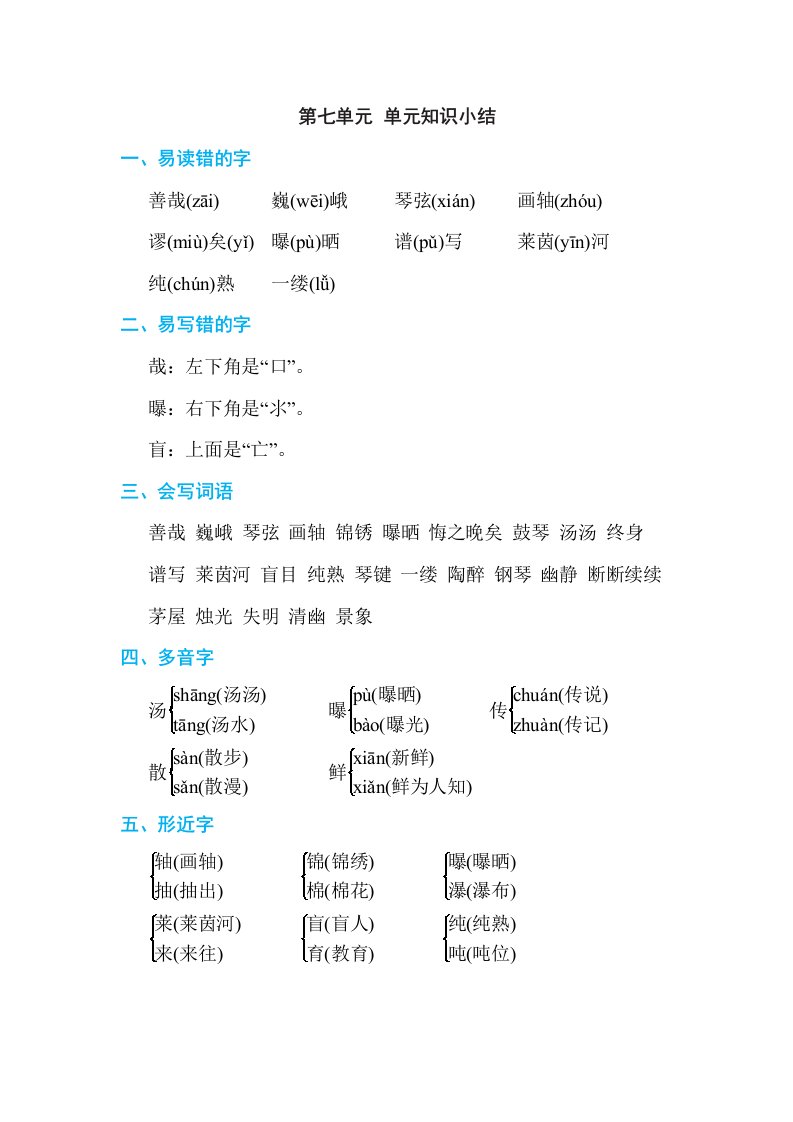 六年级语文上册第七单元单元知识小结(部编版)_共4页