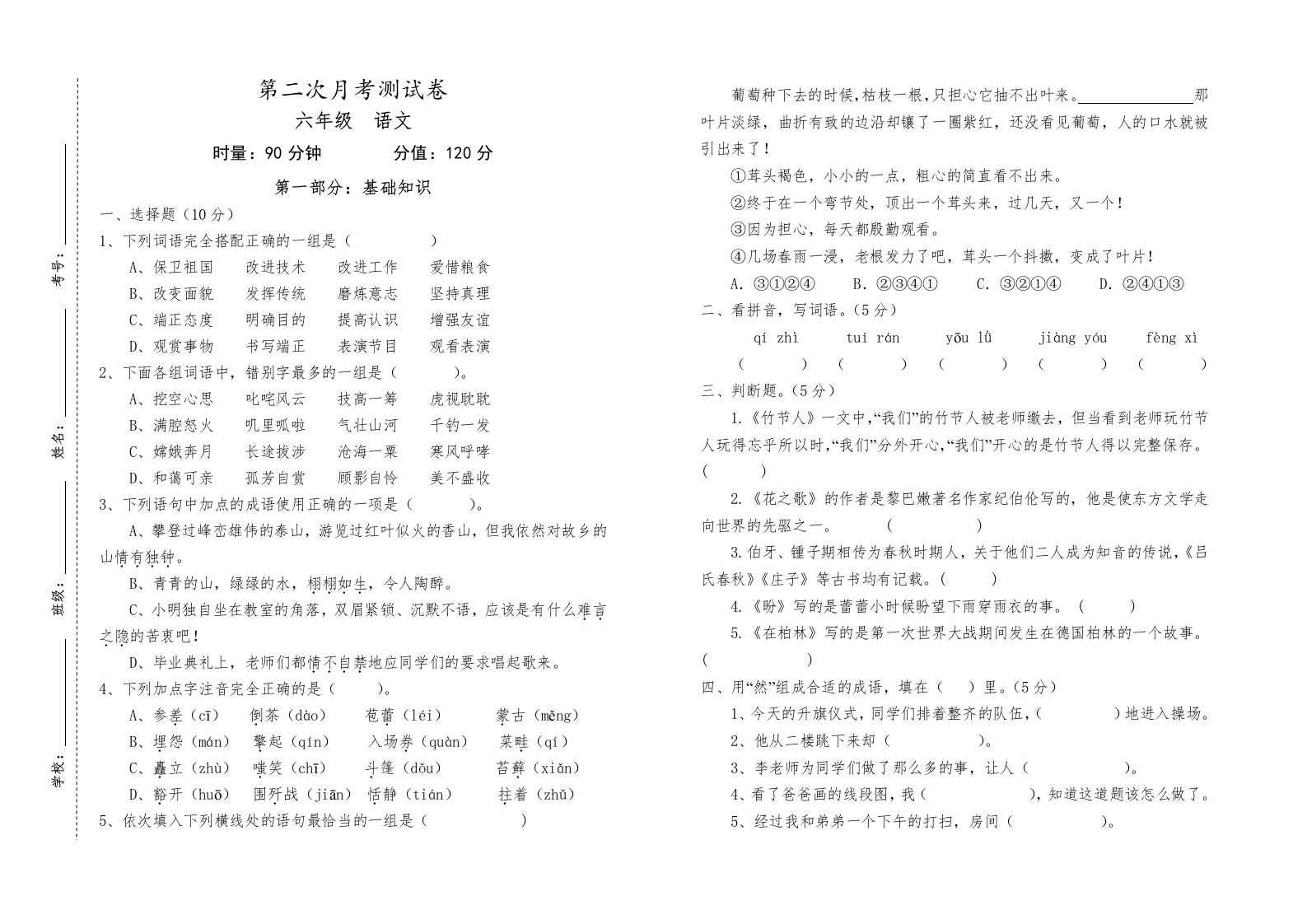 当前位置: 首页小学资源小学六年级正文 六年级语文上册第二次月考试卷人教()(部编版)_共5页 小学六年级 6 天前 0 0 5 以上为部分内容预览,如需源文档请登录您的会员账号进行下载! 声明:本站所有文章,如无特殊说明或标注,均为本站原创发布。任何个人或组织,在未征得本站同意时,禁止复制、盗用、采集、发布本站内容到任何网站、书籍等各类媒体平台。如若本站内容侵犯了原著者的合法权益,可联系我们进行处理。 尚学资源永久会员 打赏 收藏 海报 链接