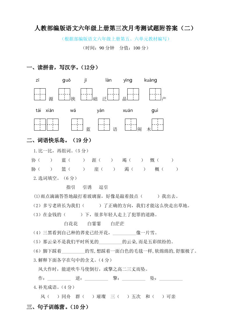 当前位置: 首页小学资源小学六年级正文 六年级语文上册第三次月考测试人教()(部编版)_共5页 小学六年级 6 天前 0 0 5 以上为部分内容预览,如需源文档请登录您的会员账号进行下载! 声明:本站所有文章,如无特殊说明或标注,均为本站原创发布。任何个人或组织,在未征得本站同意时,禁止复制、盗用、采集、发布本站内容到任何网站、书籍等各类媒体平台。如若本站内容侵犯了原著者的合法权益,可联系我们进行处理。 尚学资源永久会员 打赏 收藏 海报 链接