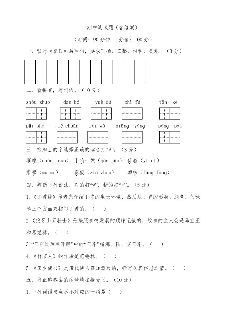 六年级语文上册期中测试(7)(部编版)_共16页