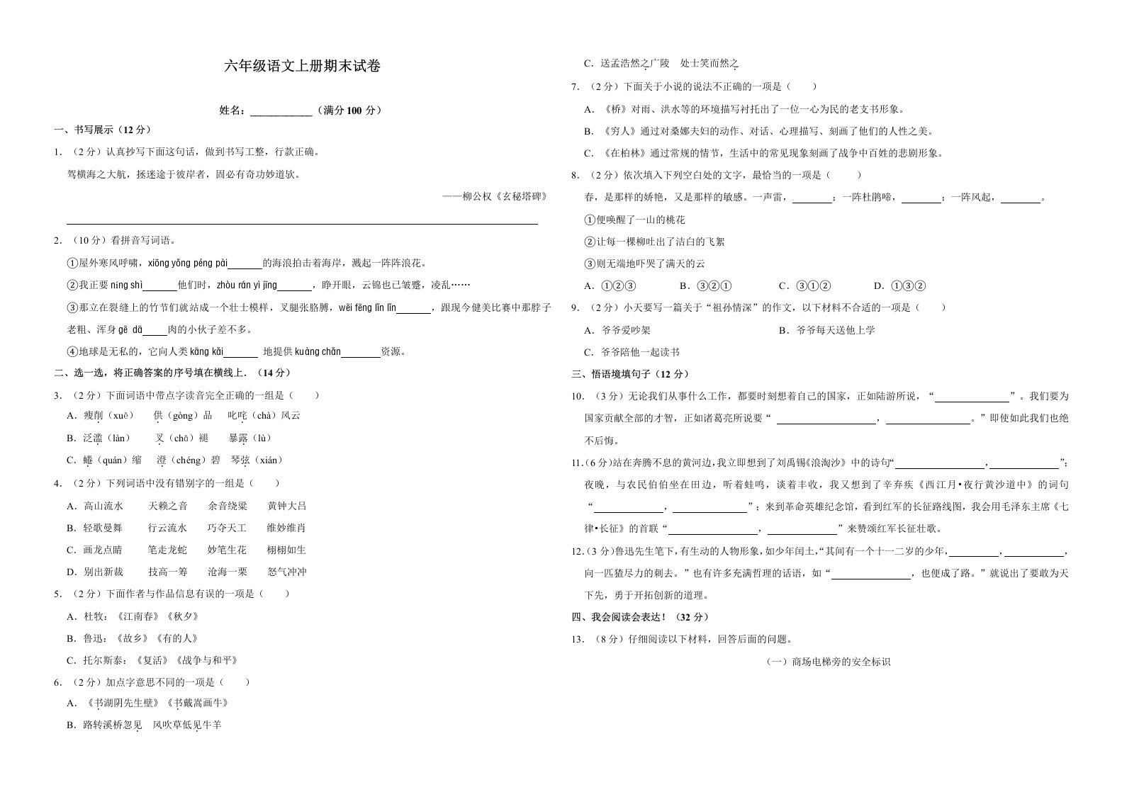 当前位置: 首页小学资源小学六年级正文 六年级语文上册(期末测试卷)(18)(部编版)_共4页 小学六年级 7 天前 0 0 5 以上为部分内容预览,如需源文档请登录您的会员账号进行下载! 声明:本站所有文章,如无特殊说明或标注,均为本站原创发布。任何个人或组织,在未征得本站同意时,禁止复制、盗用、采集、发布本站内容到任何网站、书籍等各类媒体平台。如若本站内容侵犯了原著者的合法权益,可联系我们进行处理。 尚学资源永久会员 打赏 收藏 海报 链接