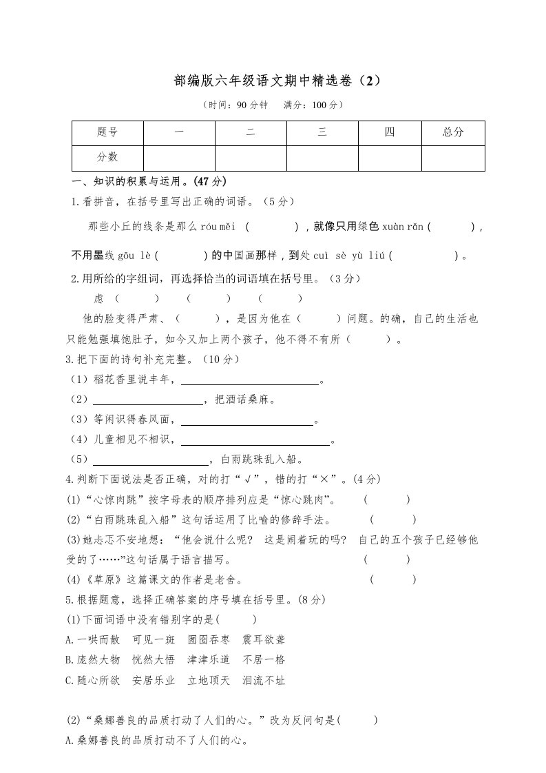 当前位置: 首页小学资源小学六年级正文 六年级语文上册期末练习(7)(部编版)_共6页 小学六年级 7 天前 0 0 5 以上为部分内容预览,如需源文档请登录您的会员账号进行下载! 声明:本站所有文章,如无特殊说明或标注,均为本站原创发布。任何个人或组织,在未征得本站同意时,禁止复制、盗用、采集、发布本站内容到任何网站、书籍等各类媒体平台。如若本站内容侵犯了原著者的合法权益,可联系我们进行处理。 尚学资源永久会员 打赏 收藏 海报 链接