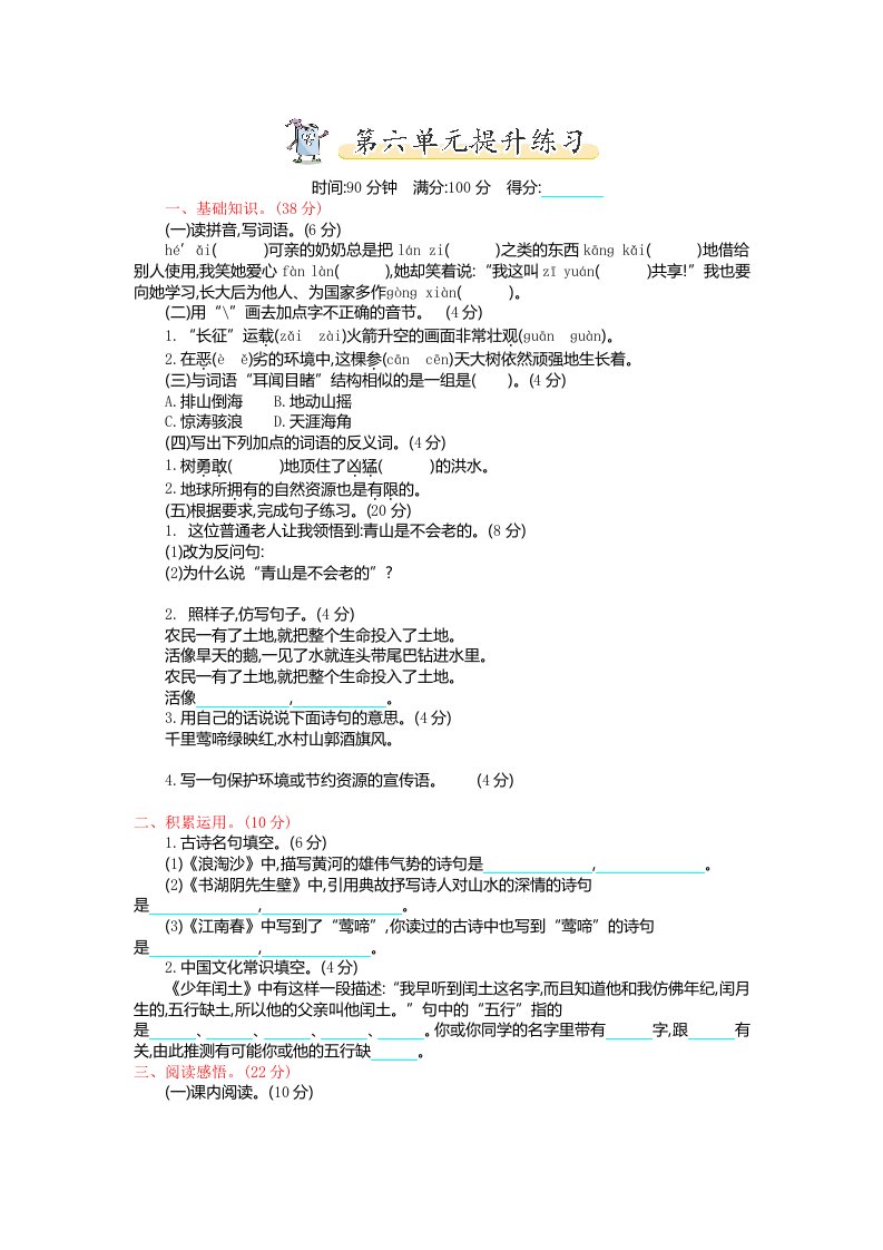 当前位置: 首页小学资源小学六年级正文 六年级语文上册第六单元提升练习(部编版)_共3页 小学六年级 7 天前 0 0 5 以上为部分内容预览,如需源文档请登录您的会员账号进行下载! 声明:本站所有文章,如无特殊说明或标注,均为本站原创发布。任何个人或组织,在未征得本站同意时,禁止复制、盗用、采集、发布本站内容到任何网站、书籍等各类媒体平台。如若本站内容侵犯了原著者的合法权益,可联系我们进行处理。 尚学资源永久会员 打赏 收藏 海报 链接