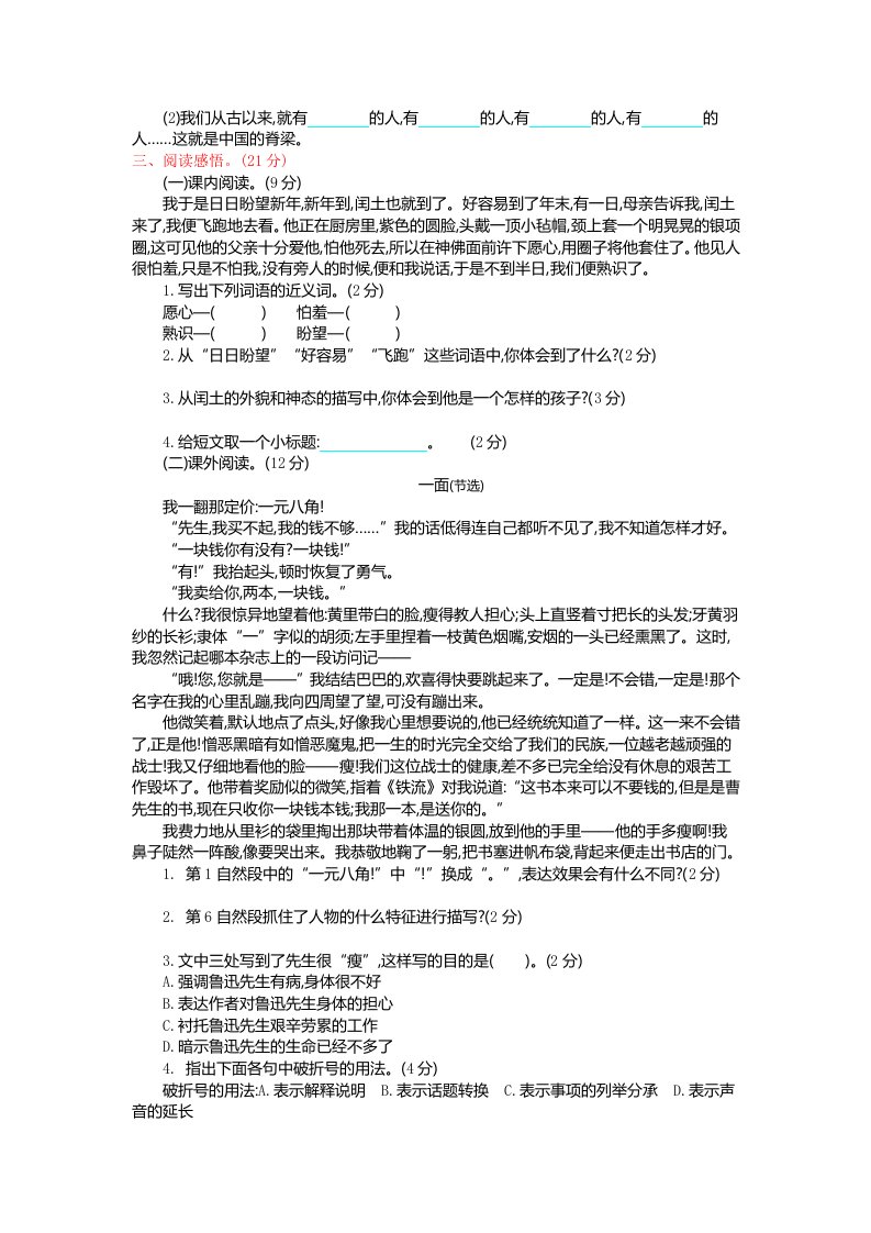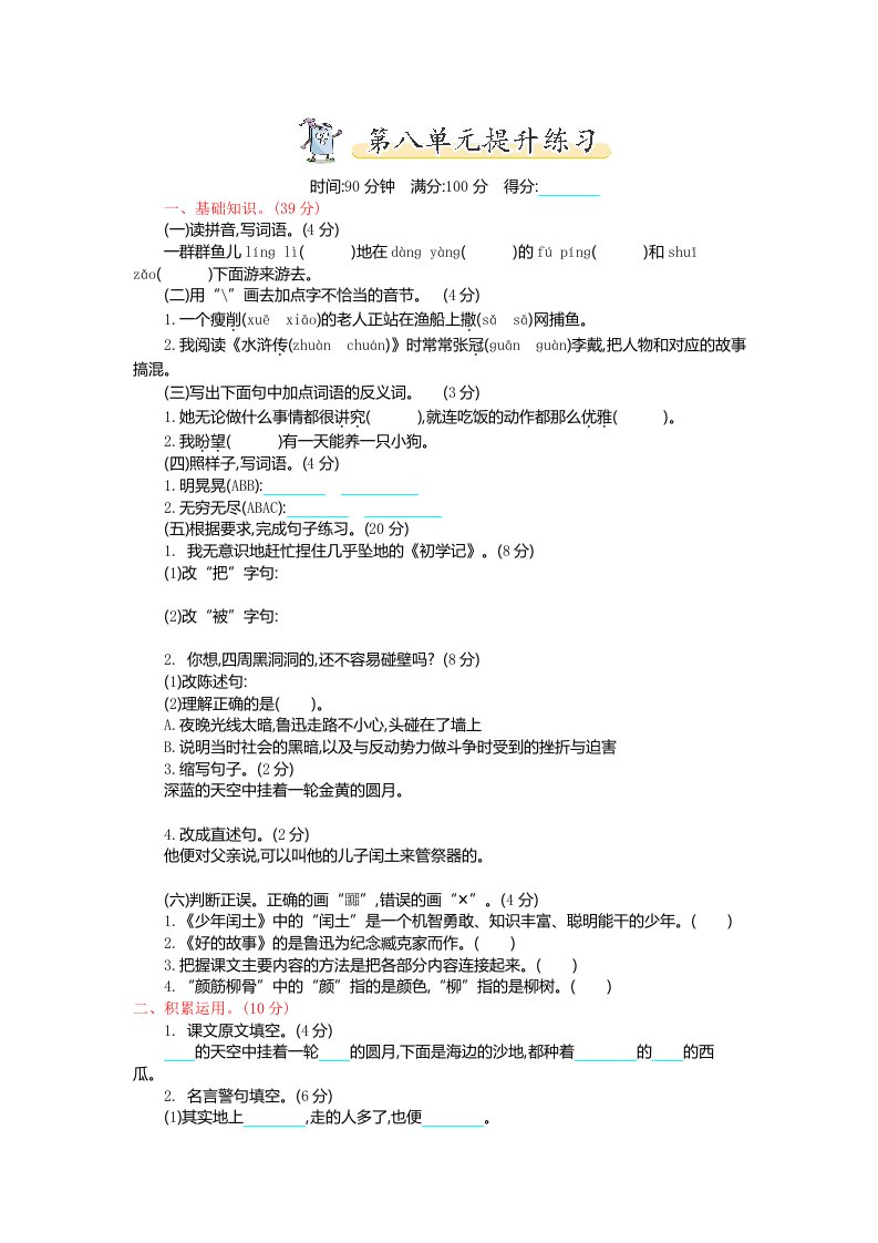 当前位置: 首页小学资源小学六年级正文 六年级语文上册第八单元提升练习(部编版)_共3页 小学六年级 6 天前 0 0 5 以上为部分内容预览,如需源文档请登录您的会员账号进行下载! 声明:本站所有文章,如无特殊说明或标注,均为本站原创发布。任何个人或组织,在未征得本站同意时,禁止复制、盗用、采集、发布本站内容到任何网站、书籍等各类媒体平台。如若本站内容侵犯了原著者的合法权益,可联系我们进行处理。 尚学资源永久会员 打赏 收藏 海报 链接