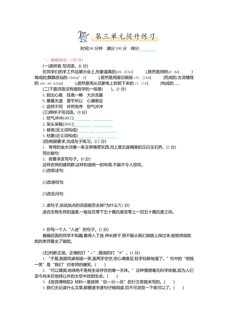 当前位置: 首页小学资源小学六年级正文 六年级语文上册第三单元提升练习(部编版)_共4页 小学六年级 7 天前 0 0 5 以上为部分内容预览,如需源文档请登录您的会员账号进行下载! 声明:本站所有文章,如无特殊说明或标注,均为本站原创发布。任何个人或组织,在未征得本站同意时,禁止复制、盗用、采集、发布本站内容到任何网站、书籍等各类媒体平台。如若本站内容侵犯了原著者的合法权益,可联系我们进行处理。 尚学资源永久会员 打赏 收藏 海报 链接