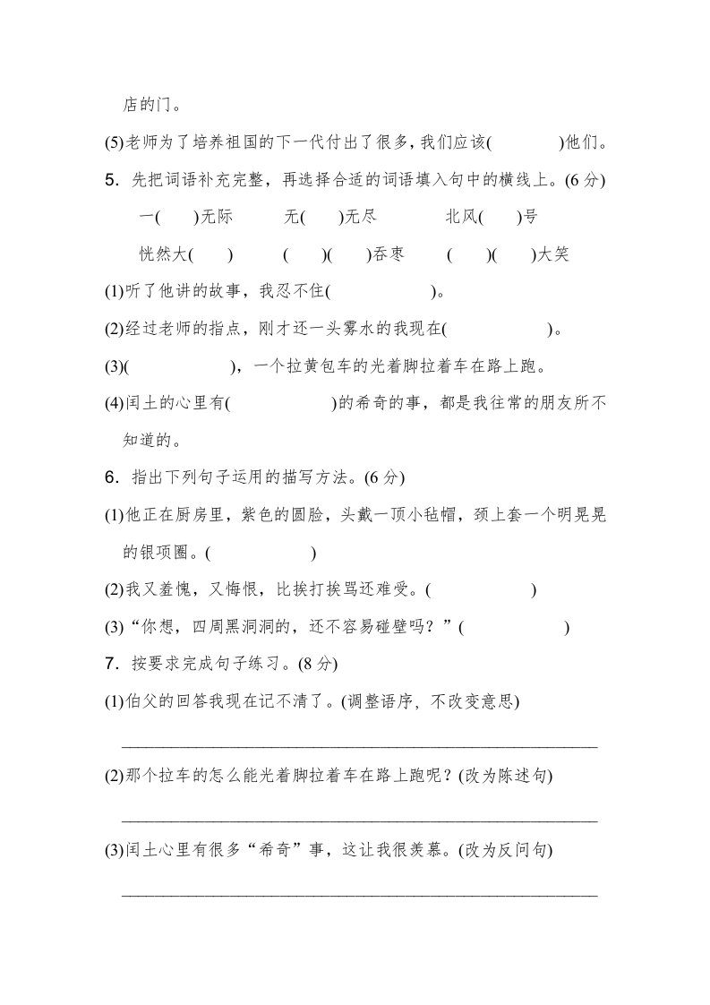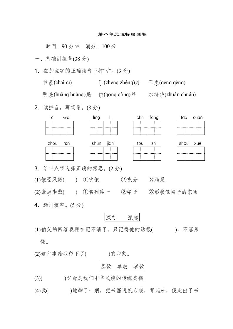 六年级语文上册第八单元达标检测卷(一)(部编版)_共8页