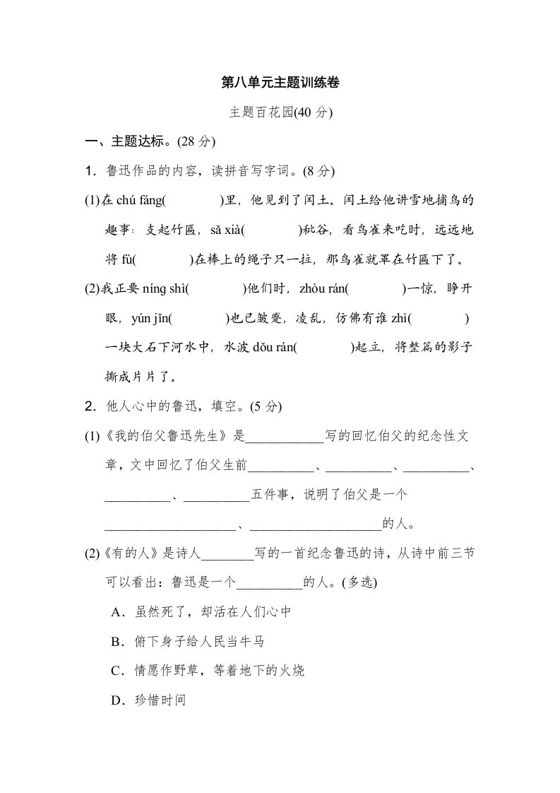 当前位置: 首页小学资源小学六年级正文 六年级语文上册第八单元主题训练卷(部编版)_共9页 小学六年级 6 天前 0 0 5 以上为部分内容预览,如需源文档请登录您的会员账号进行下载! 声明:本站所有文章,如无特殊说明或标注,均为本站原创发布。任何个人或组织,在未征得本站同意时,禁止复制、盗用、采集、发布本站内容到任何网站、书籍等各类媒体平台。如若本站内容侵犯了原著者的合法权益,可联系我们进行处理。 尚学资源永久会员 打赏 收藏 海报 链接