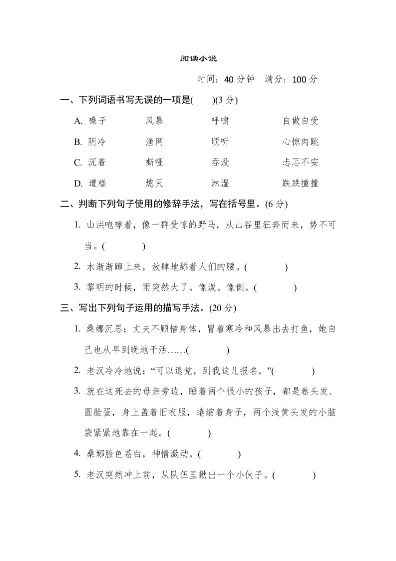 当前位置: 首页小学资源小学六年级正文 六年级语文上册“阅读小说”主题突破卷(部编版)_共7页 小学六年级 6 天前 0 0 5 以上为部分内容预览,如需源文档请登录您的会员账号进行下载! 声明:本站所有文章,如无特殊说明或标注,均为本站原创发布。任何个人或组织,在未征得本站同意时,禁止复制、盗用、采集、发布本站内容到任何网站、书籍等各类媒体平台。如若本站内容侵犯了原著者的合法权益,可联系我们进行处理。 尚学资源永久会员 打赏 收藏 海报 链接
