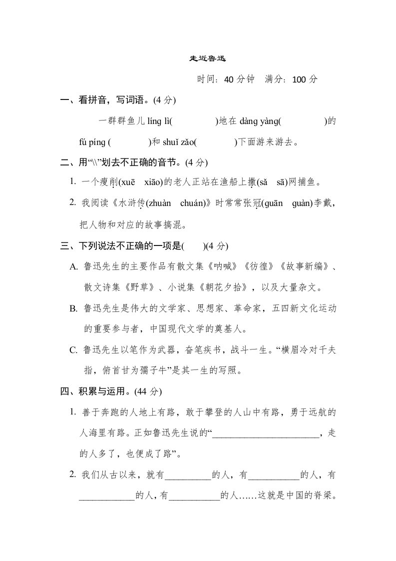 当前位置: 首页小学资源小学六年级正文 六年级语文上册“走近鲁迅”主题突破卷(部编版)_共7页 小学六年级 6 天前 0 0 5 以上为部分内容预览,如需源文档请登录您的会员账号进行下载! 声明:本站所有文章,如无特殊说明或标注,均为本站原创发布。任何个人或组织,在未征得本站同意时,禁止复制、盗用、采集、发布本站内容到任何网站、书籍等各类媒体平台。如若本站内容侵犯了原著者的合法权益,可联系我们进行处理。 尚学资源永久会员 打赏 收藏 海报 链接