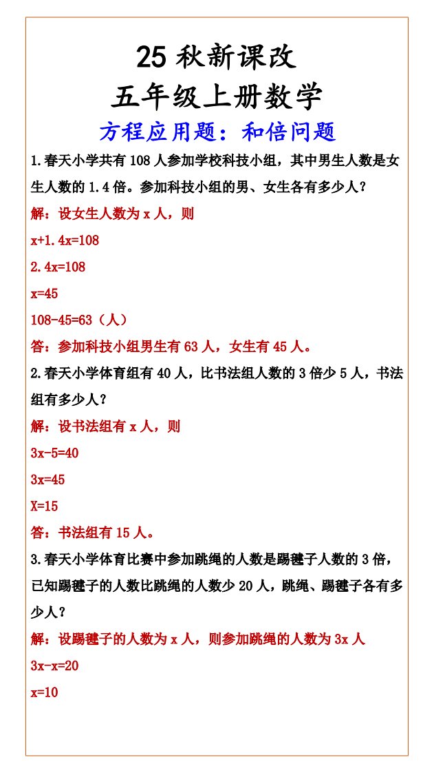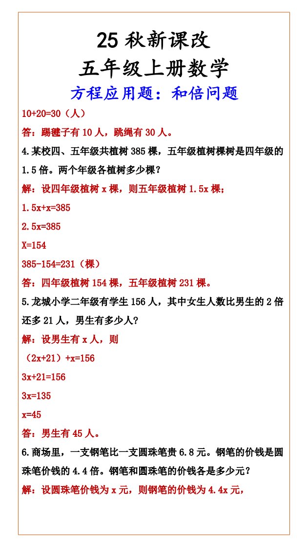 当前位置: 首页小学资源小学六年级正文 【2025秋新版】六年级上册数学方程应用题:和倍问题_共6页 小学六年级 6 天前 0 0 5 以上为部分内容预览,如需源文档请登录您的会员账号进行下载! 声明:本站所有文章,如无特殊说明或标注,均为本站原创发布。任何个人或组织,在未征得本站同意时,禁止复制、盗用、采集、发布本站内容到任何网站、书籍等各类媒体平台。如若本站内容侵犯了原著者的合法权益,可联系我们进行处理。 尚学资源永久会员 打赏 收藏 海报 链接