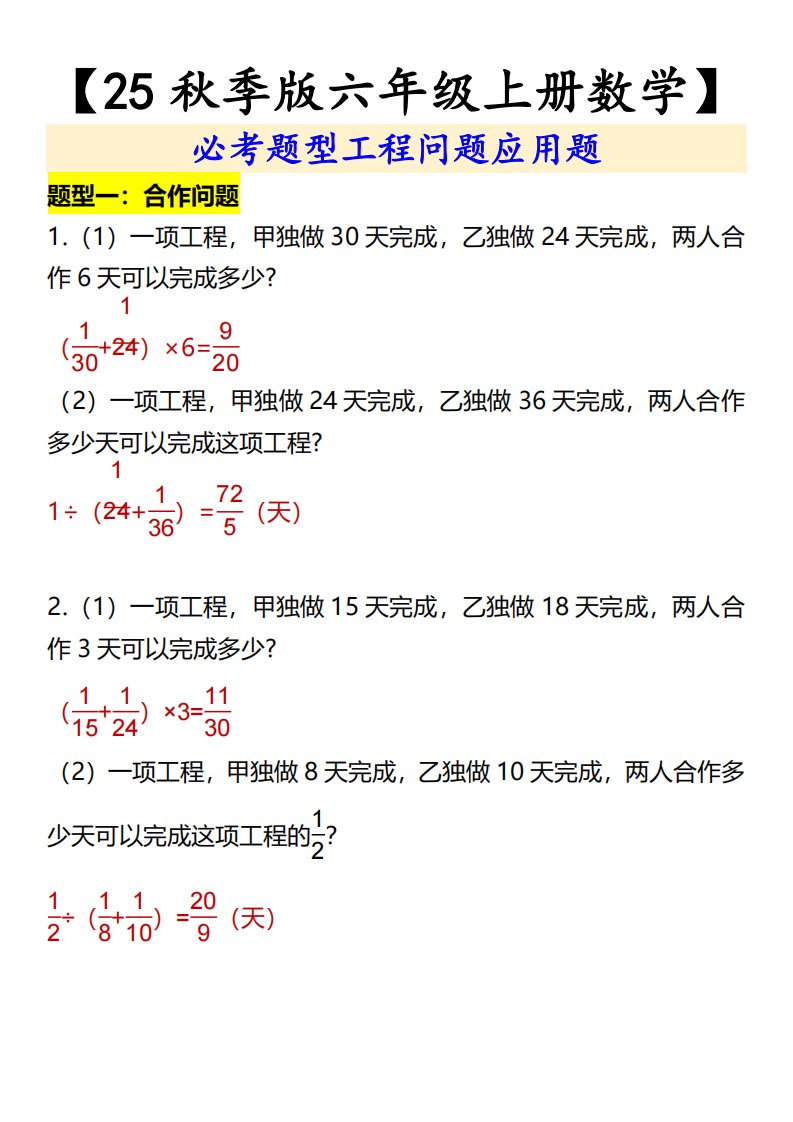 【2025秋新版】【六年级上册数学】必考题型工程问题应用题_共4页