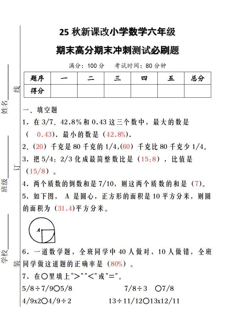 当前位置: 首页小学资源小学六年级正文 【2025秋新版】小学数学六年级期末高分期末冲刺测试必刷题-六上数学_共8页 小学六年级 6 天前 0 0 5 以上为部分内容预览,如需源文档请登录您的会员账号进行下载! 声明:本站所有文章,如无特殊说明或标注,均为本站原创发布。任何个人或组织,在未征得本站同意时,禁止复制、盗用、采集、发布本站内容到任何网站、书籍等各类媒体平台。如若本站内容侵犯了原著者的合法权益,可联系我们进行处理。 尚学资源永久会员 打赏 收藏 海报 链接