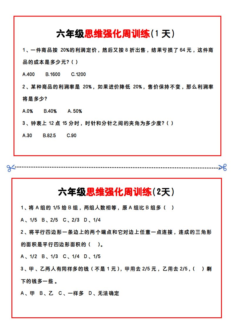 当前位置: 首页小学资源小学六年级正文 【六年级上】数学思维周训练小纸条_共4页 小学六年级 7 天前 0 0 5 以上为部分内容预览,如需源文档请登录您的会员账号进行下载! 声明:本站所有文章,如无特殊说明或标注,均为本站原创发布。任何个人或组织,在未征得本站同意时,禁止复制、盗用、采集、发布本站内容到任何网站、书籍等各类媒体平台。如若本站内容侵犯了原著者的合法权益,可联系我们进行处理。 尚学资源永久会员 打赏 收藏 海报 链接