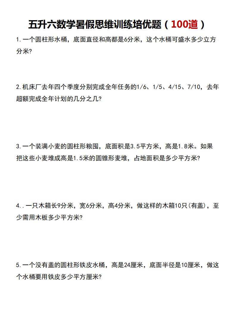 当前位置: 首页小学资源小学六年级正文 五升六数学暑假思维应用题训练100题-六上数学_共21页 小学六年级 6 天前 0 0 15 以上为部分内容预览,如需源文档请登录您的会员账号进行下载! 声明:本站所有文章,如无特殊说明或标注,均为本站原创发布。任何个人或组织,在未征得本站同意时,禁止复制、盗用、采集、发布本站内容到任何网站、书籍等各类媒体平台。如若本站内容侵犯了原著者的合法权益,可联系我们进行处理。 尚学资源永久会员 打赏 收藏 海报 链接