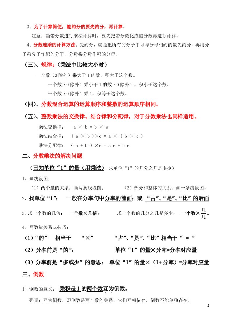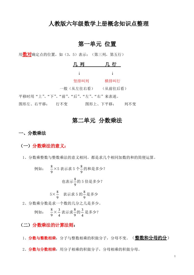 人教版六年级数学上册概念知识点整理_共14页