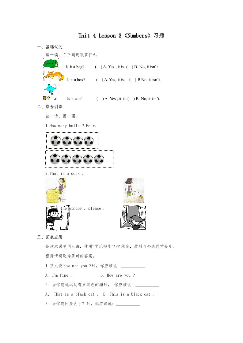 一年级英语上册Numbers习题(3)(人教一起点)_共3页