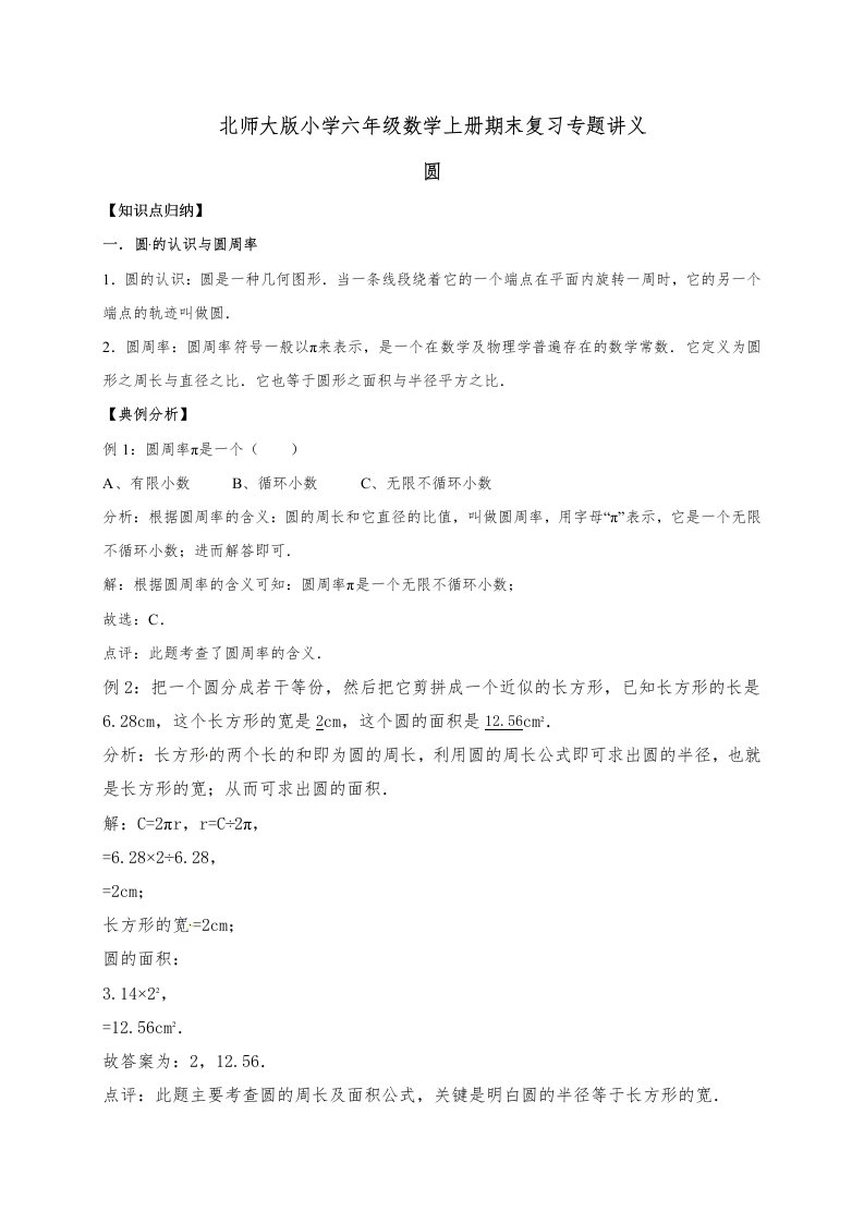 六年级数学上册1.圆(含详解)(北师大版)_共15页